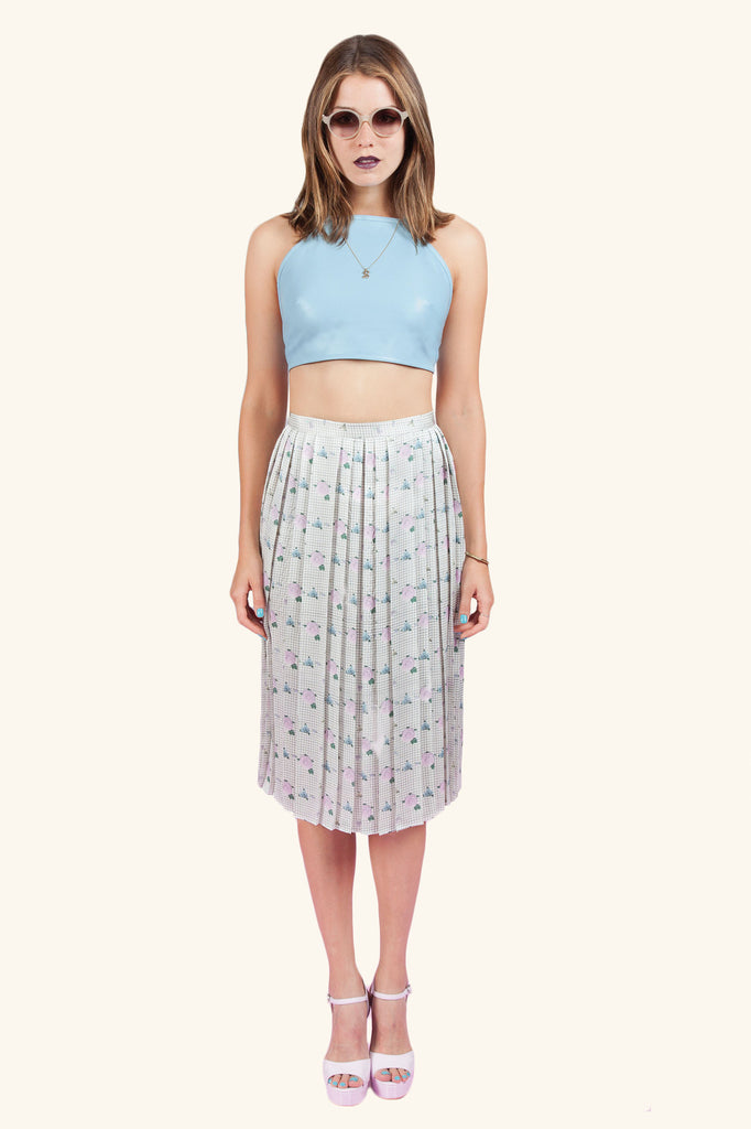 Baby baby blue leather.. How could you go wrong? The Paige Leather Halter is this season's best seller. Perfect to style with a high-waisted bottom, try our Isadora or Alexandra Midis.